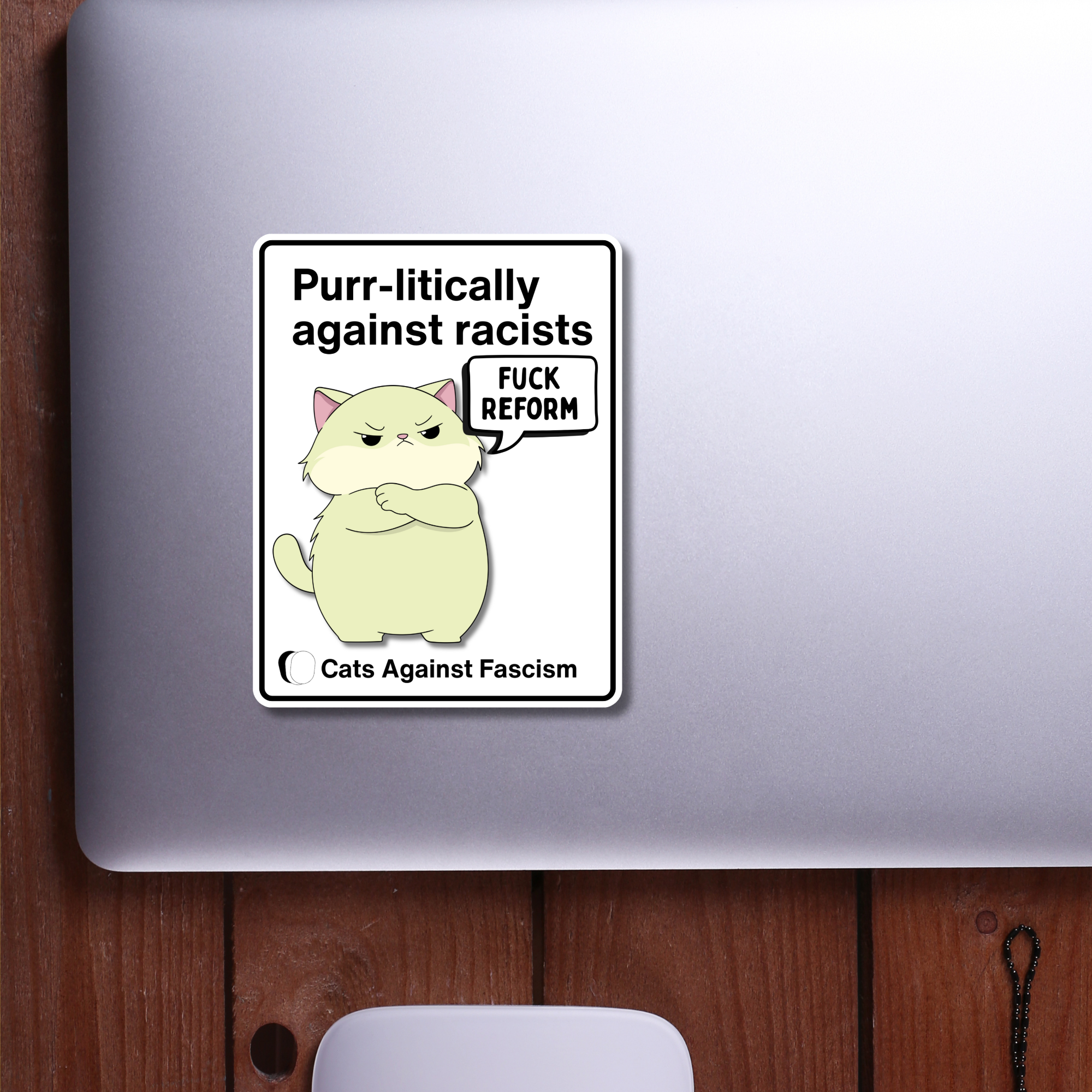 The Fuck Reform Cats Against Fascism Sticker is bold, colourful, and unapologetically political—designed to make a statement, start conversations, and bring a bit of rebellious joy into everyday life.